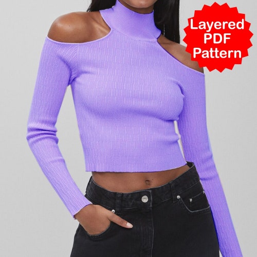 Sweater Knitting Pattern Andra Cropped Thumb Hole Sweater Etsy